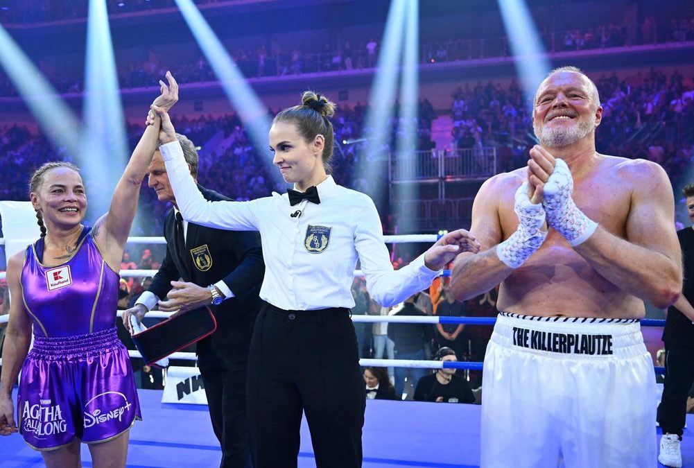 Regina Halmich duellierte sich am Samstag zum insgesamt dritten Mal mit TV-Legende Stefan Raab in einem Showkampf und gewann auch das dritte Duell deutlich und souverän nach Punkten. Damit war sie neben Raab die Hauptprotagonistin in dem spektakulären Comeback des Moderators, der erstmals seit seinem TV-Abschied im Jahr 2015 wieder vor einer Fernsehkamera auftauchte.